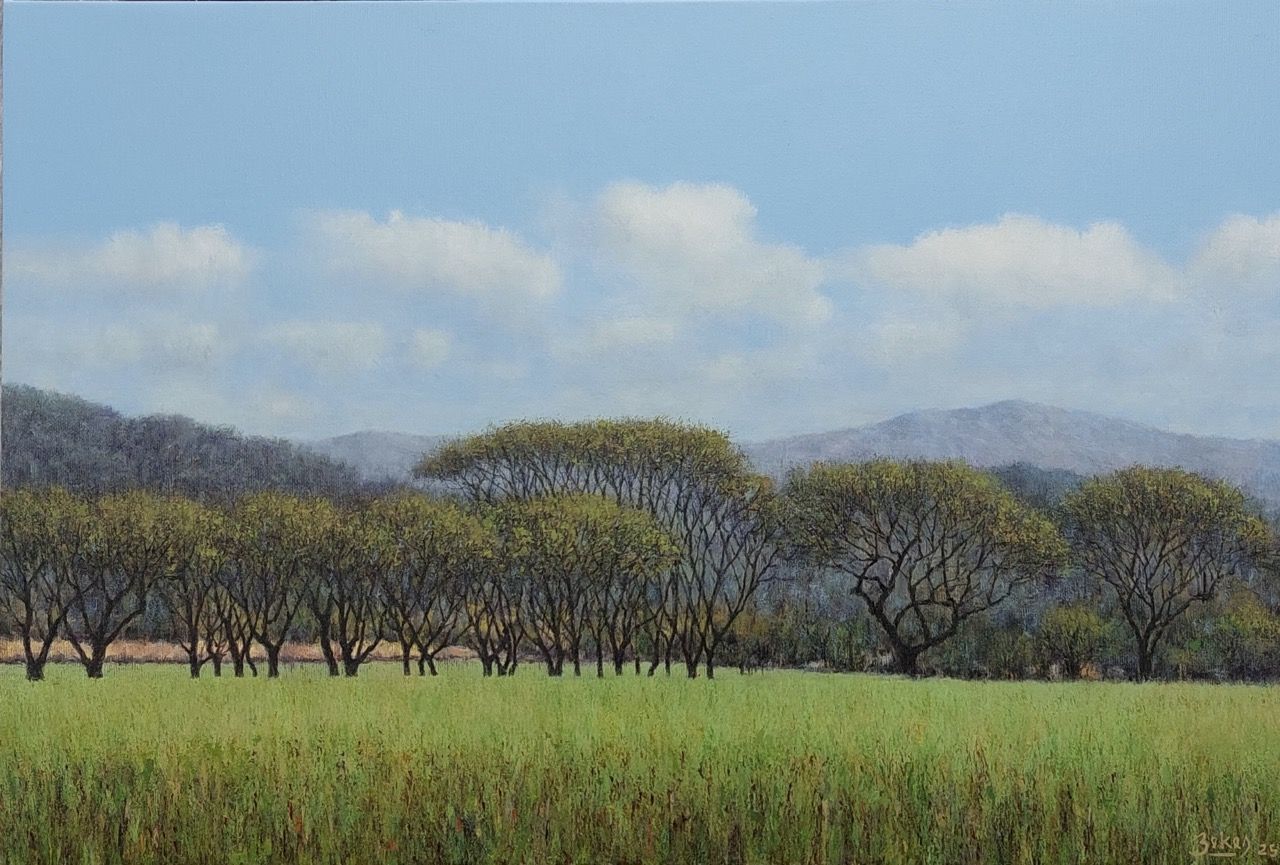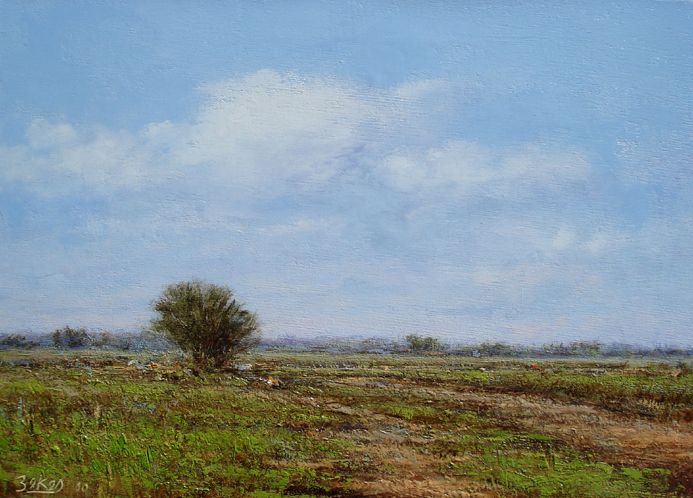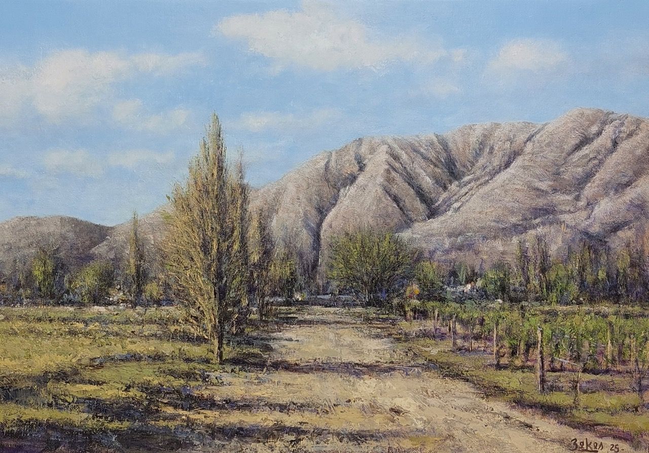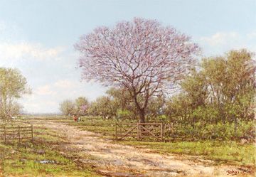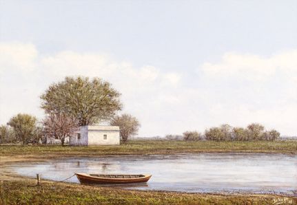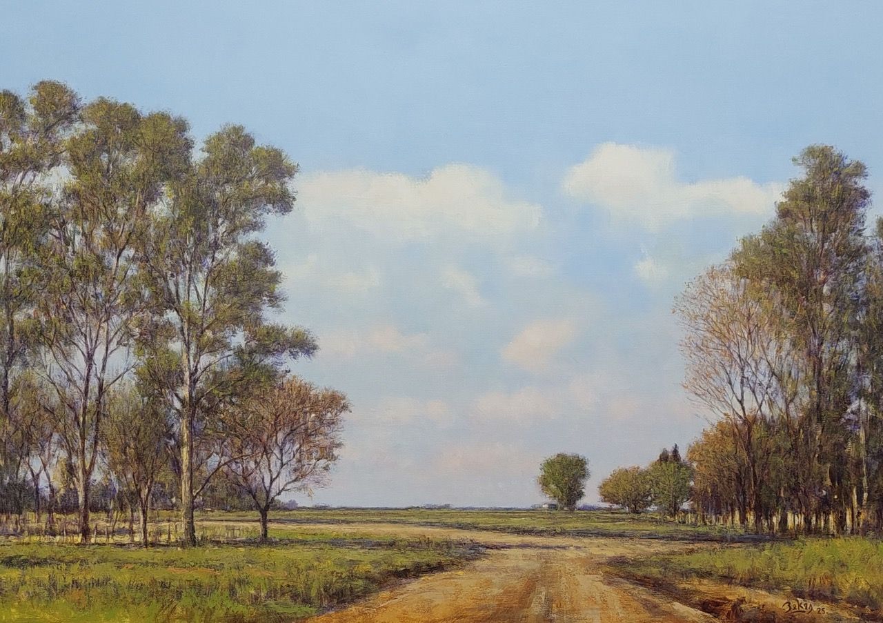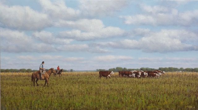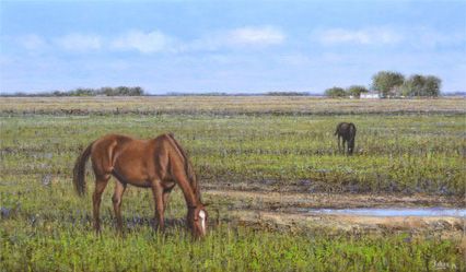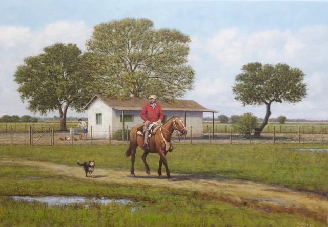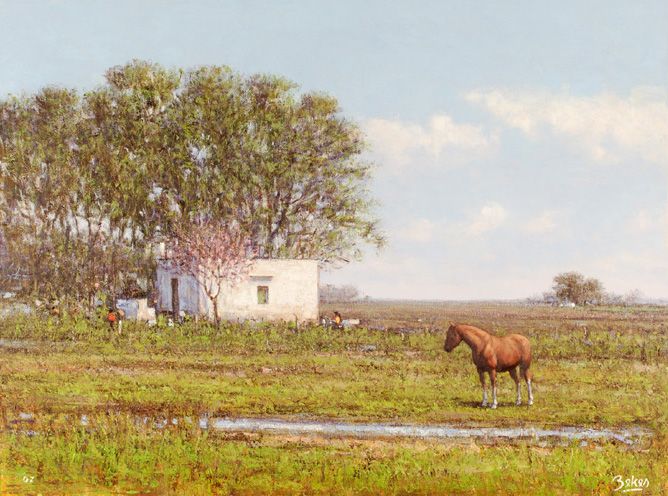 Hay además un contraste evidente entre los cuadros pintados en España, donde se siente la presencia de la comunidad cercana y amiga, y los que se retratan la llanura argentina, donde impera la soledad. Una soledad por momentos terrible, en el desierto elemental, que conmueve y deslumbra, como una mano tendida a la nada… El artista pinta esencialmente la luz, la admirable certeza de cuando emerge a la mirada y quisiera quedarse, detenerse, eternizarse en ella.